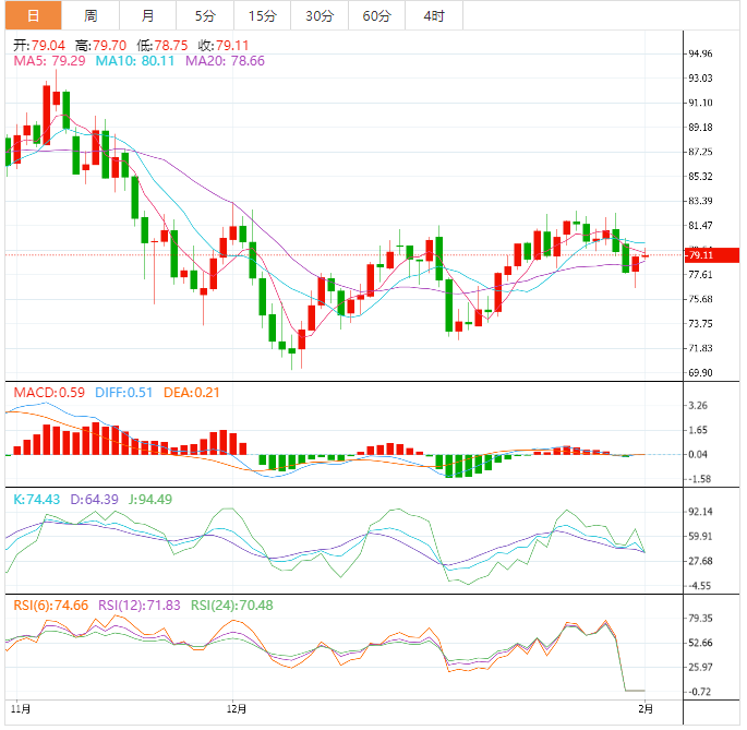 38.2%的水平接近中间通道区域,每桶80.37美元。更强的看涨压力可能会将原油推至50%的扩展位,即每桶81.58美元,或61.8%的水平,即每桶82.80美元,这与波动高点一致。