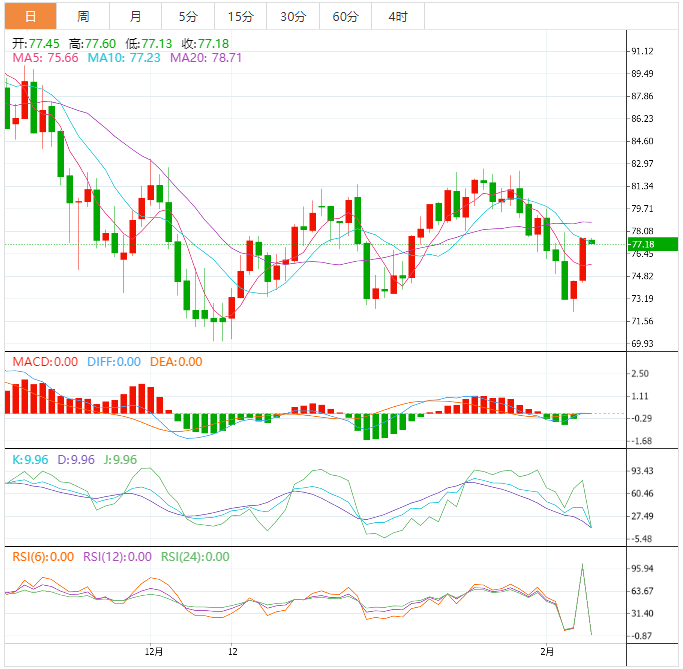周三盘中,美油交投于77.42美元/桶附近;油价周二大涨超4%,美联储主席鲍威尔缓解了市场对加息的担忧,地缘紧张局势依然支撑油价,而中国需求恢复也提振了油价。
