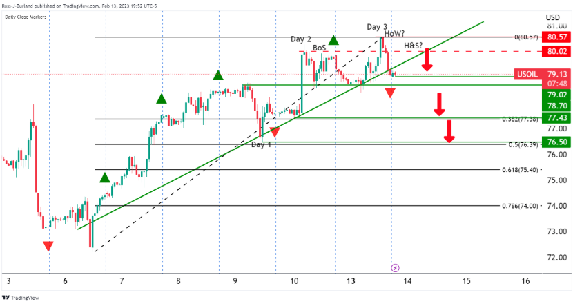 在数据最终引发空头撤离之前,空头将对持有可能被多头挤压的头寸感到紧张。然而,如果多头没有阻力,79.00美元的突破开启了向第一天多头移动的风险,接近76.50美元,延续周一的看跌收盘。