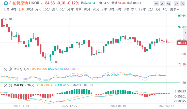 当前阻力位在85.04美元/桶,若突破该阻力位,则可能进入85.49-85.76美元/桶区间。