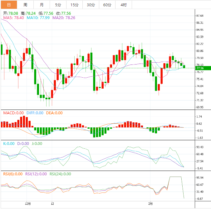 在这种情况下,76.70美元是大宗商品向前一周低点72.50美元下跌的关键。