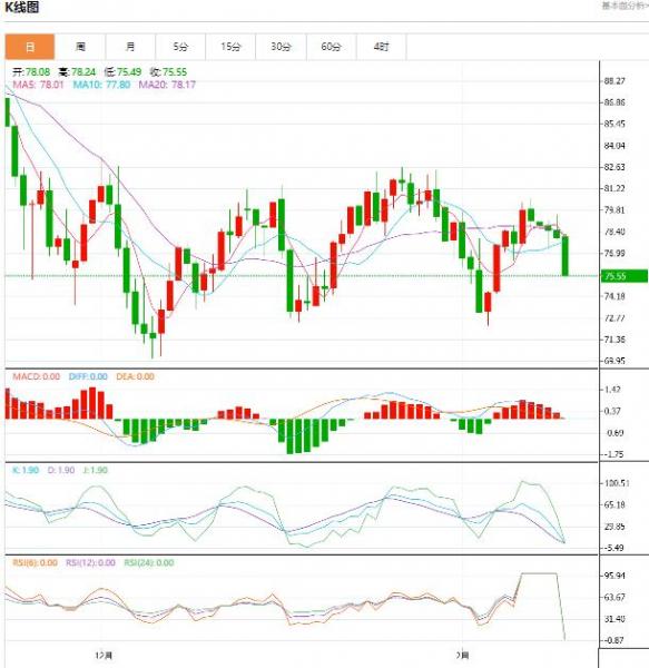今天的预期交易区间在 74.18 支撑位和 76.99 阻力位之间。今日预期趋势:中性