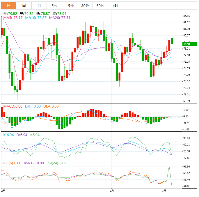 此外,1月27日以来的向下倾斜的支撑线,即之前的阻力位约为78.45美元,可能是对大宗商品最新疲弱走势的考验。