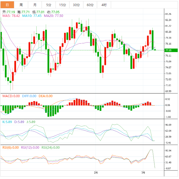 在此之后,不排除跌至2月22日的波动低点73.85美元,然后跌至前一个月的底部72.50美元附近。