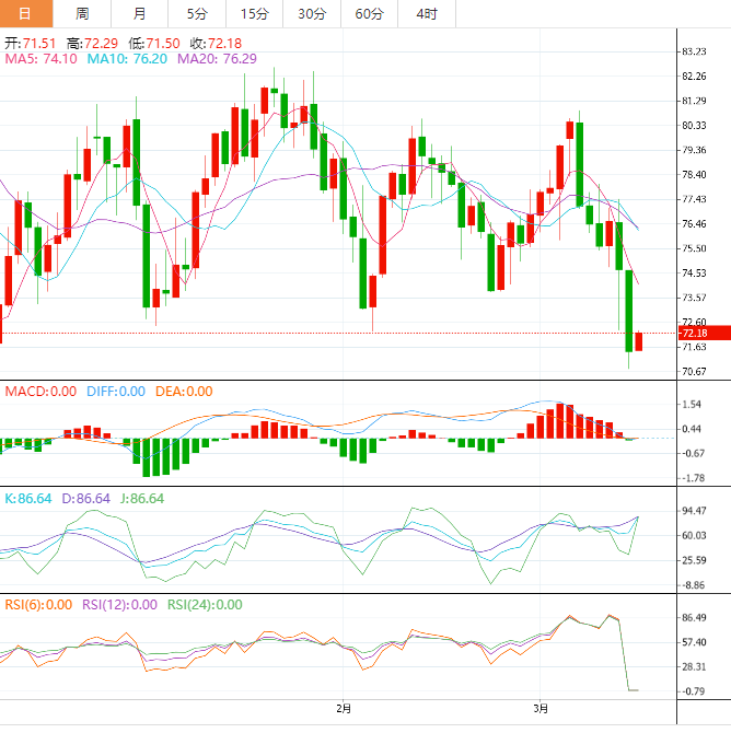 技术面上,日线依旧在宽幅区间内有待破位,昨日虽然下探,但未收在之下,没有形成有效破位,局部还会拉锯反复,等待突破。4小时图K线形态走得较凌乱,有点洗盘拉锯的走法,由于区间未有效突破,目前暂时还看不出单边,操作上还是把时间点卡到欧美盘。下轨区间不破,短期仍是震荡思路对待。震荡行情中更考验点位,方向其次,所以切入点尽量在走出一定区间后再行定夺。建议以反弹高空为主,回踩低多为辅,上方短期关注73.2-73.7一线阻力,下方短期关注70.5-70.0一线支撑。