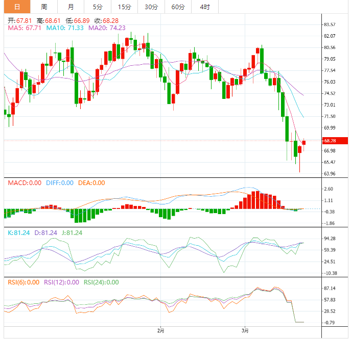 斐波那契回撤工具显示,这与50%水平一致,这可能足以保持涨幅。更大的回调可能会达到每桶75美元的61.8%斐波那契水平,这与移动平均线的动态阻力位一致。
