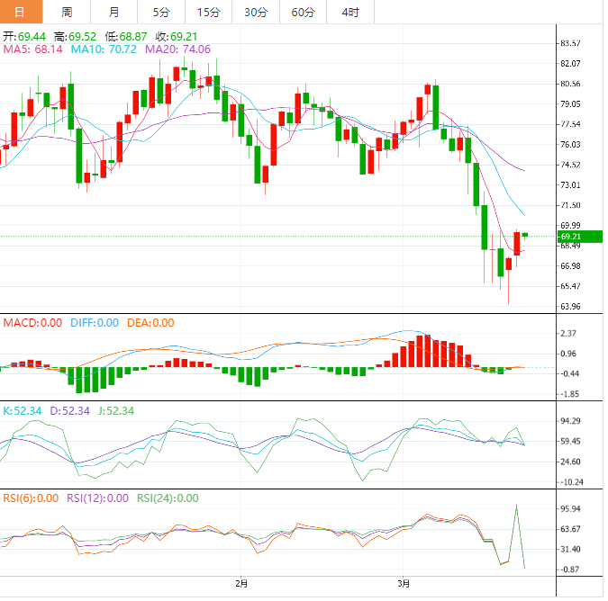 38.2%的水平为每桶64.88美元,50%的水平为每桶63.36美元。更强的抛售压力可能会将原油价格拉低至61.8%的水平,即每桶61.84美元,或每桶60美元附近的76.4%的水平。全部延期价格为每桶56.93美元。