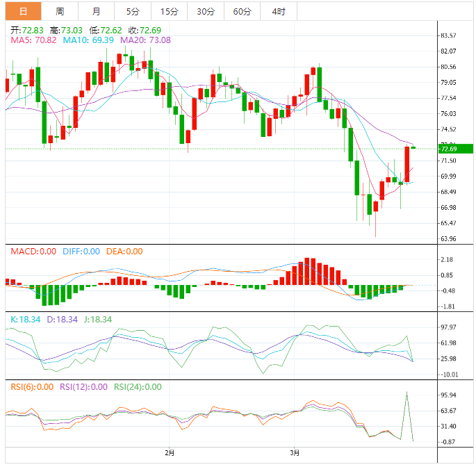相反,在突显10日移动均线支撑位69.50美元之前,70.00美元限制了WTI原油的近期下行。