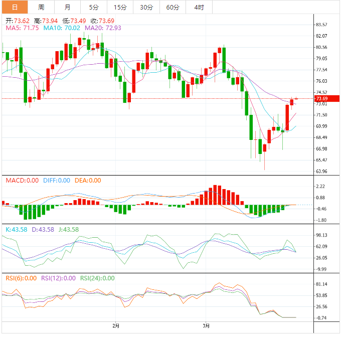 展望未来,突破当前阻力位74.00美元的决定性行动将推动油价走向3月03日高点76.00美元的水平阻力位。如果突破后者,该资产将升至3月2日的高点78.65美元。