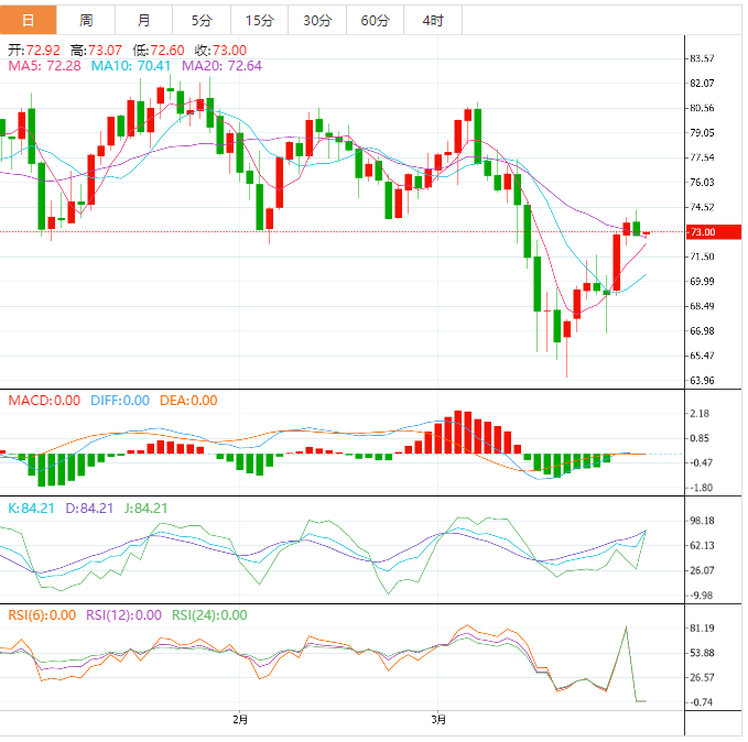 与此同时,前面提到的73.90-74.00美元附近的五周水平阻力位限制了WTI原油的立即上行。