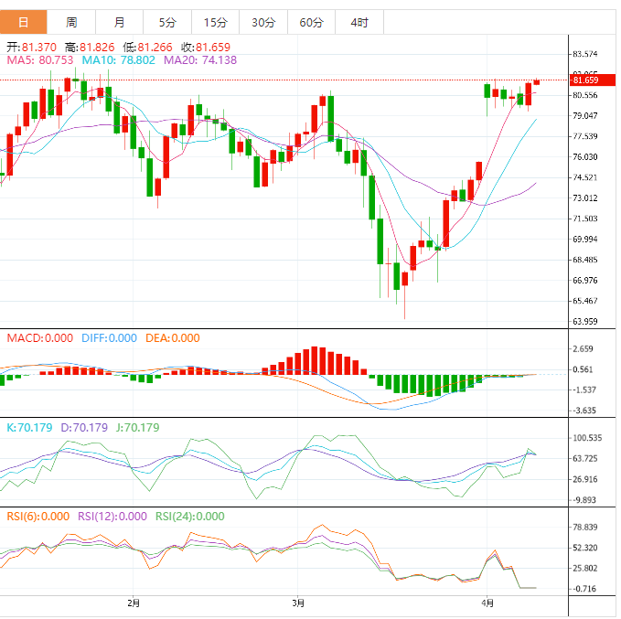 100移动均线位于200移动均线之上,表明阻力最小的路径是上行,或者支撑位更有可能保持而不是突破。在这种情况下,原油价格也可能突破每桶82美元左右的近期高点。