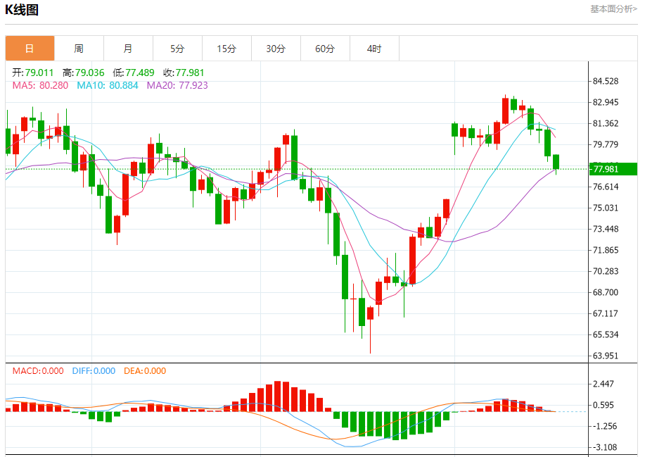 支撑位:77.50 77.10 76.80