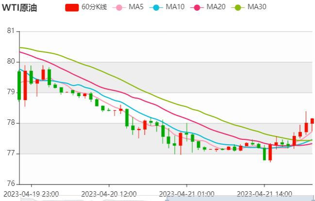 北京时间16:38,NYMEX原油期货下跌0.05%至77.33美元/桶;ICE布伦特原油期货持平于80.81美元/桶。两市续创3月31日以来新低,分别至76.72美元/桶和80.21美元/桶。