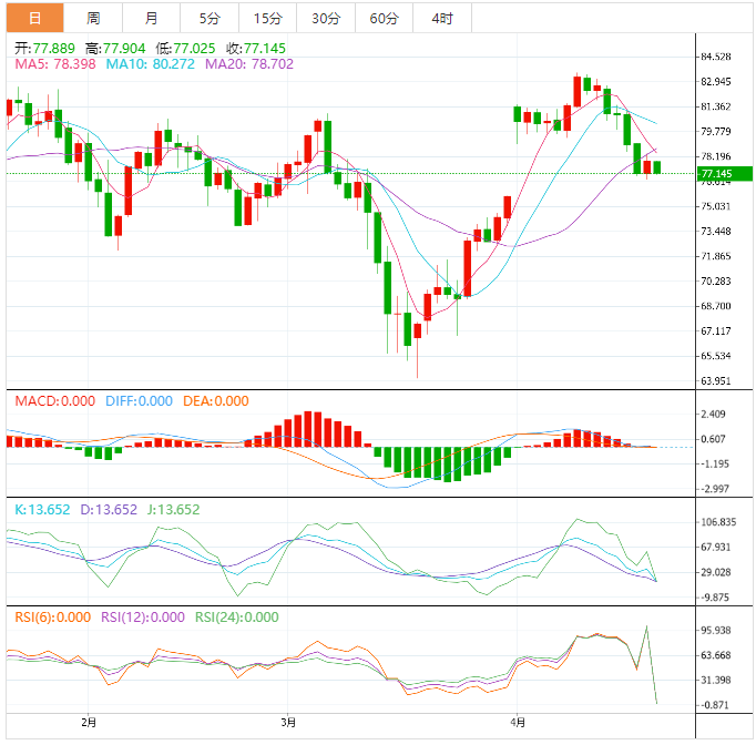 另一方面,如果油价信心突破4月3日的低点79.00美元,将推动油价向4月4日的高点81.80美元和4月12日的高点83.40美元靠拢。