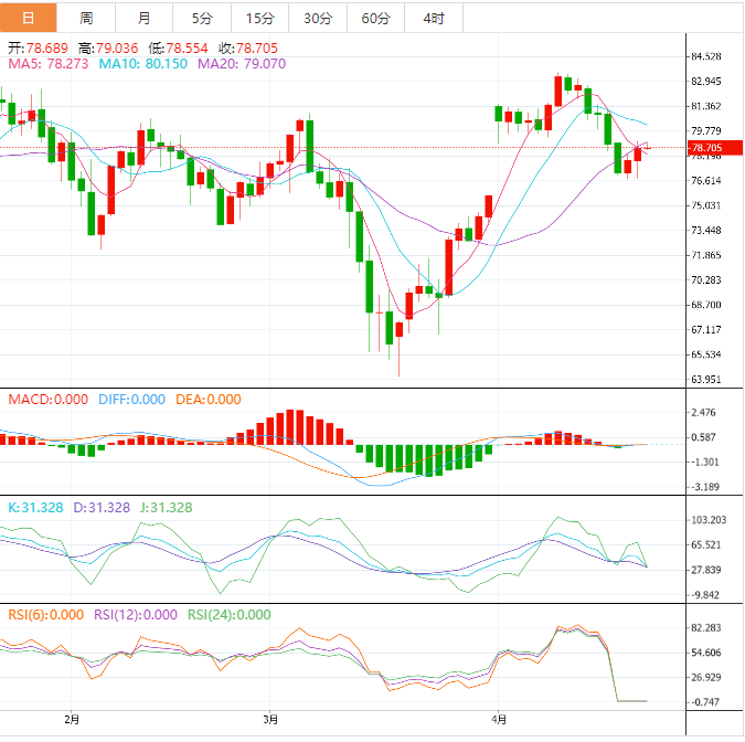 尽管该能源指标在短期关键均线上下波动,但若能保持在200均线水准77.70美元上方,将加入看涨MACD信号,令原油买家保持希望。