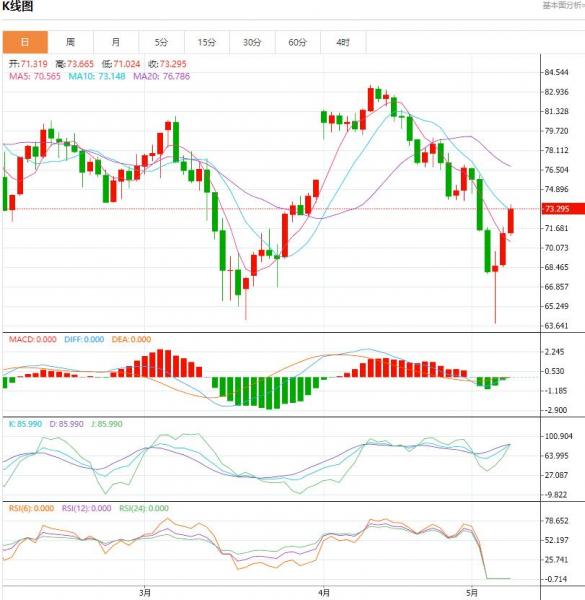 今天的预期交易区间在 71.68 支撑位和 74.89 阻力位之间。今日预期趋势:看涨