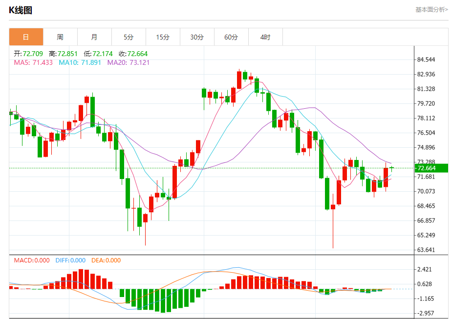 周四盘中,WTI原油报72.571,跌幅0.18%。