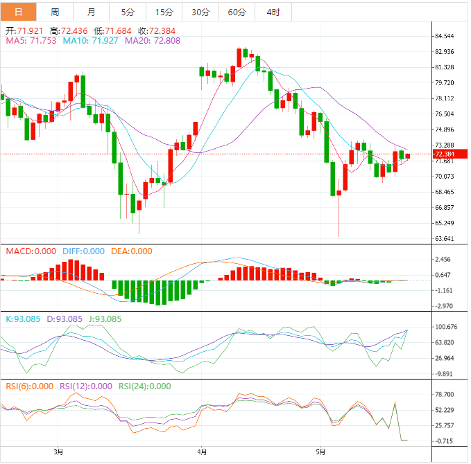 值得注意的是,4月份73.85-90美元附近的低点在引导石油买家达到76.60美元的月高点之前,充当了一个额外的过滤器。