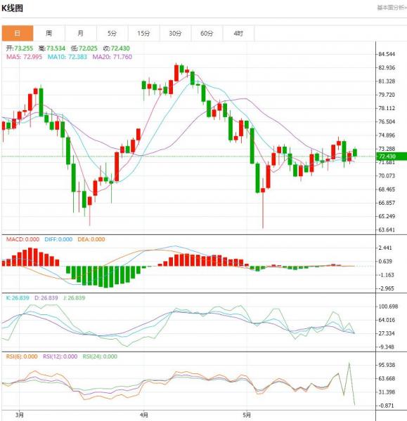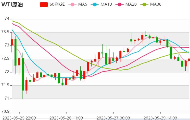周一(5月29日),国际油价下跌,尽管上周末美国领导人达成暂定债务上限协议,可能避免世界最大经济体和最大石油消费国债务违约,但对美联储进一步加息的担忧给油市带来压力。NYMEX原油关注71.88美元支撑。北京时间20:54,NYMEX原油期货下跌0.63%至72.21美元/桶;ICE布伦特原油期货下跌0.74%至76.41美元/桶。