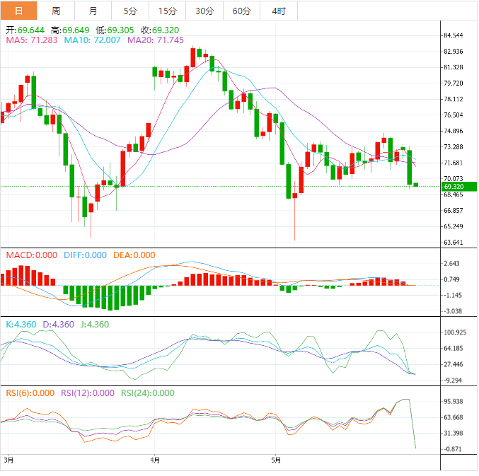 周二亚洲时段,美原油交投于69.61美元/桶附近;油价周二大跌近5%,为5月2日以来最大单日跌幅,因市场担心美国国会是否会通过美国债务上限协议,以及主要产油国发出的相互矛盾的信息,在本周末OPEC+会议前令供应前景蒙阴。