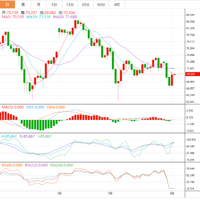 在其他方面,美国能源情报署(EIA)报告的周库存意外增加,截至5月26日当周为448.8万桶,而此前预期为- 138.6万桶,之前为- 1245.6万桶,这对油价构成了压力。