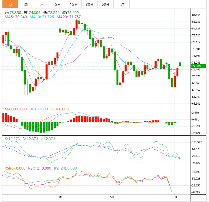 美国债务上限协议达成,美股上涨,且OPEC+将减产协议延长至2024年,沙特承诺在7月大幅减产,诸多利好因素影响下,油价短线多头强劲,有望剑指75美元/桶。