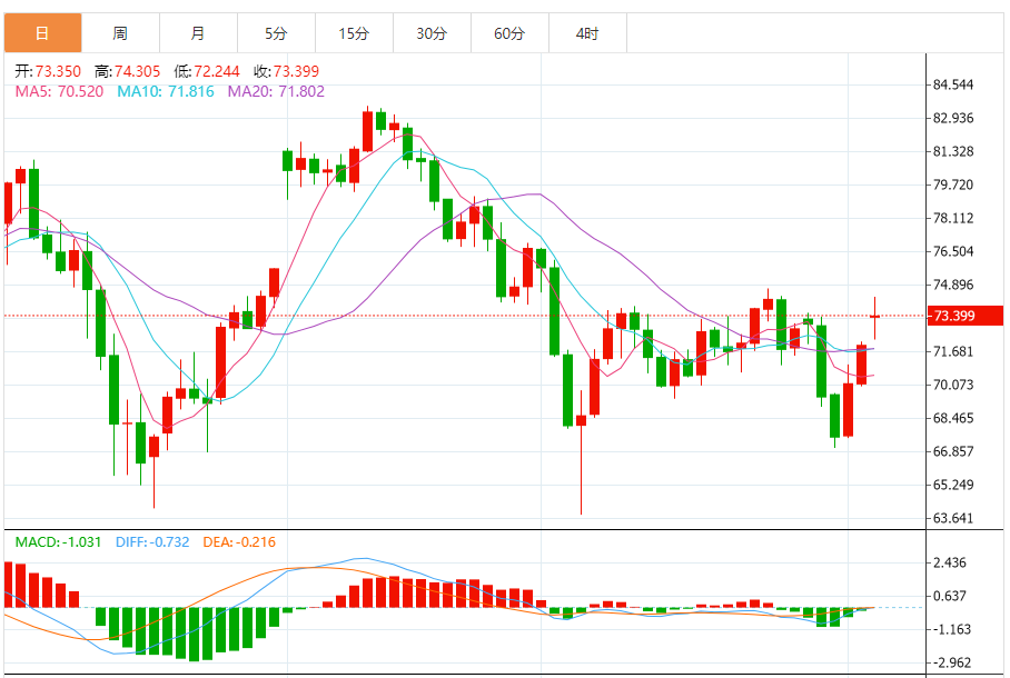 两市早盘均创5月2日以来新高,分别至75.03美元/桶和78.73美元/桶,因沙特能源部表示该国7月份产量将从5月份的约1000万桶/日降至900万桶/日。此次减产是该国多年来力度最大的一次。