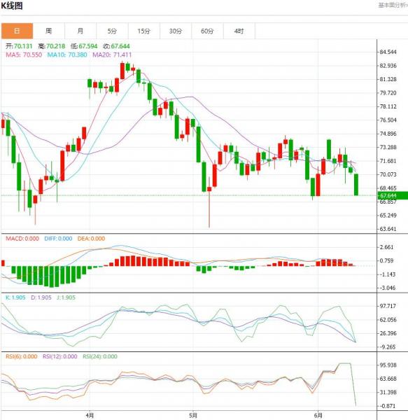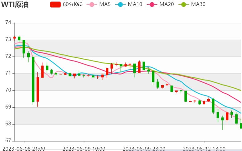 周一(6月12日),国际油价下跌,投资者试图衡量美联储进一步加息的意愿。同时,投资者担心需求不足且供应增加,市场也因此承压。NYMEX原油下看67.46美元。