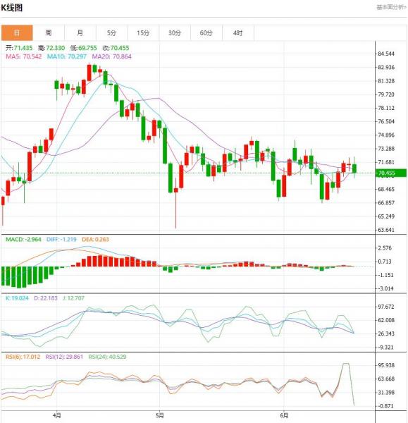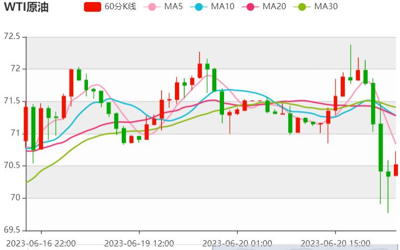 周二(6月20日)亚欧时段,美原油小幅走弱,目前交投于71.25美元.桶附近,伊朗原油出口和石油产量在2023年创下新高。摩根大通将其对今年布伦特油价的平均预期从先前的每桶90美元下调至81美元。