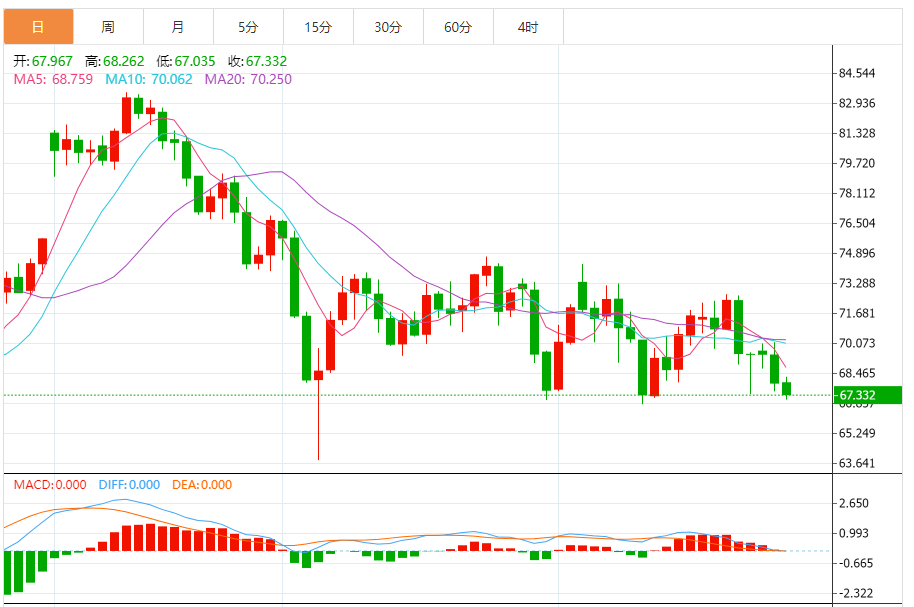 周三(6月28日),国际油价创逾两周新低,尽管美国API库存降幅超出预期,表明需求强劲,但包括美联储在内的全球央行进一步加息预期对市场构成压制。NYMEX原油价格下看66.84美元。