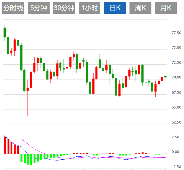 周一亚市盘初,美原油小幅上涨0.13%,交投于70.50美元/桶附近;油价上周五收高,为连续第三个交易日上涨,但季线连续第四个季度下跌,投资者担心全球经济活动低迷可能压制燃料需求,美国石油库存下降为油价提供了一些支持。