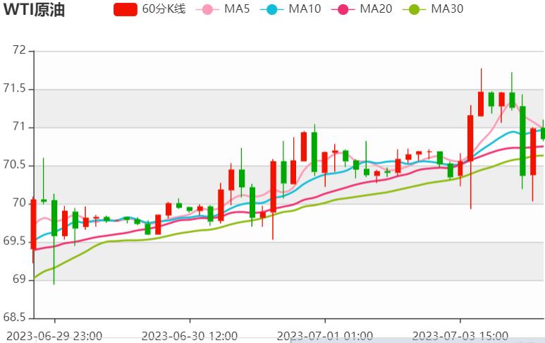 周一(7月3日),国际油价升创一周半新高,因全球最大的石油出口国沙特阿拉伯将减产期限延长至8月份,掩盖了对全球经济放缓和美联储可能进一步加息的担忧。