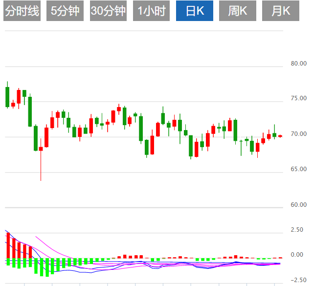 技术上,原油短线有望再度上探55日均线71.84附近阻力,若能顶破该阻力,则有望进一步上探100日均线73.74附近阻力,强阻力在5月24日高点74.71附近,该位置也是近两个月震荡区间上沿阻力所在,如果强势顶破该阻力,则增加中线看涨信号。
