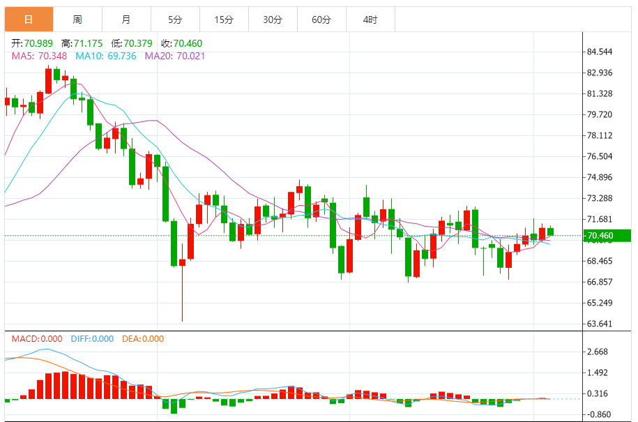 周三(7月5日),国际油价下跌,因投资者对全球经济放缓的担忧打压市场情绪。但由于此前沙特阿拉伯和俄罗斯宣布将延长并深化减产至8月,油价下行势头受限,NYMEX原油有望站稳71美元关口上方。