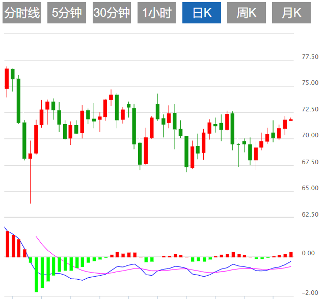 技术上,原油价格突破并收于首个目标71.55上方,这加强了继续看涨的预期,下一个目标为73.80。因此,受EMA50的支持,预期未来价格将进一步上涨,并等待累积上涨动能,以推动价格实现新的目标。需要注意的是,如果跌破71.55,将停止预期的上涨,并推动价格转为下跌。