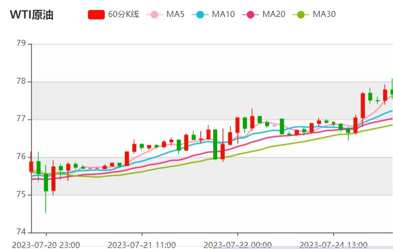 原油价格攀升至77.00关口上方,支撑今日预期看涨趋势的延续,目标为78.00,随后是78.90水平作为下一个主要站位。