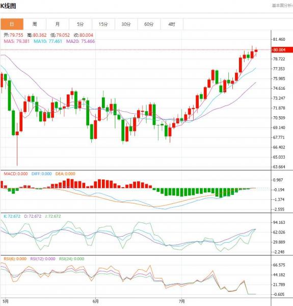 昨日油价收高,今天的看涨因素将支持油价的持续上涨趋势,但短线极端天气因素可能会限制油价。目前短线冲高后回落,但并不表示这波多头已经结束。从日线来看,布林带有收口迹象,价格在上方轨道附近徘徊,形成高位盘整,短线价格也许会有回调迹象,预计力度不会太大。四小时,布林带收口,价格在上轨和中轨之间波动。