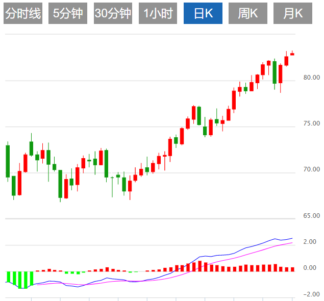 技术上,油价仍有进一步冲高机会,重点关注4月份高点83.51附近阻力,若能顶破该阻力,则有望打开新的上涨空间,进一步阻力参考11月10日高点84.70附近位置,11月16日高点阻力在87.48附近。