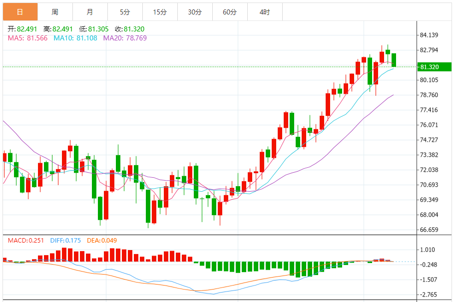 周二(8月8日),国际油价下跌,因数据显示中国7月份进出口降幅远超预期,尽管供应紧张预期限制了油价跌势。NYMEX原油短线下看80.79美元。