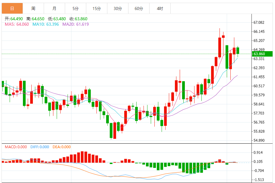 在今日收高之后,WTI原油期货本周累计上涨了0.1%左右。此外布伦特原油收于大约每桶86美元。