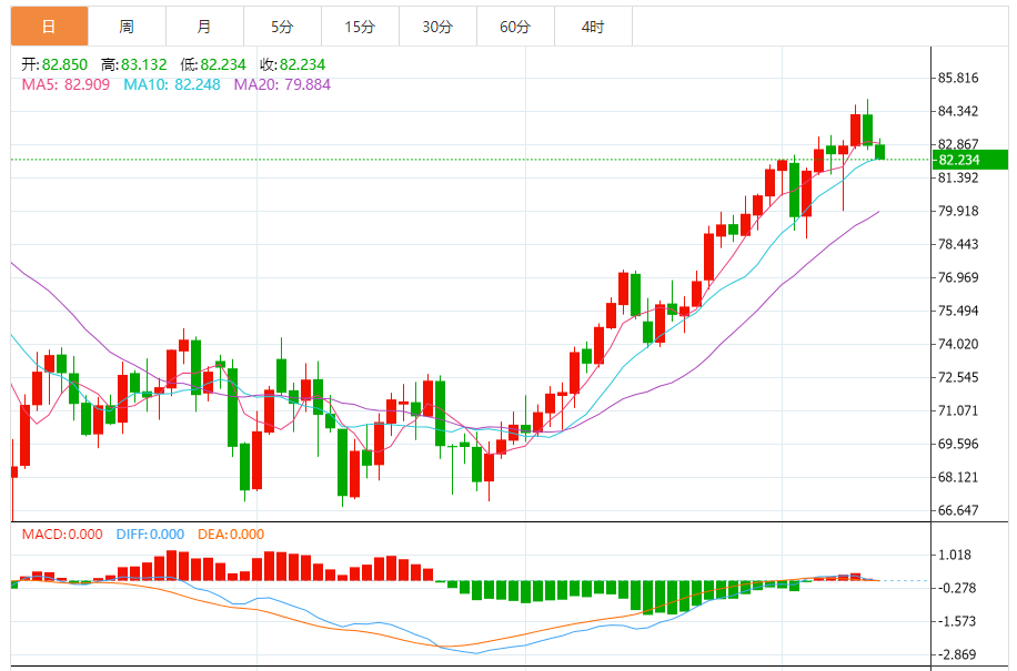 200日均线显示出一个重要的堡垒,在82.50美元附近提供了强有力的支撑。这一级别的重要性在以往的场合中已经得到证明,这支撑了其作为关键技术级别的作用。原油的长期前景表明买家持续涌入,这表明前景乐观。因此,这种情况表明买家可能会占上风,从而延续原油的上涨势头。