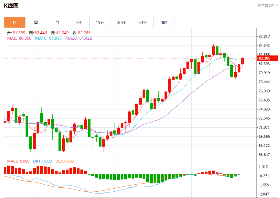 技术点评:在80.55之上,为多头信号,向上的目标位为82.30。