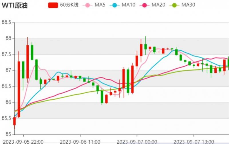 投资者消化了OPEC+领导人沙特阿拉伯和俄罗斯决定将供应限制延长至今年年底的消息,油价收于逾9个月以来的高点。周三(9月6日)国际油价继续上涨近1%,美油站上85美元/桶大关,布油达到90美元/桶以上。西德克萨斯中质(WTI)原油交易价格上行0.81美元,涨幅0.94%,现报87.08美元/桶。
