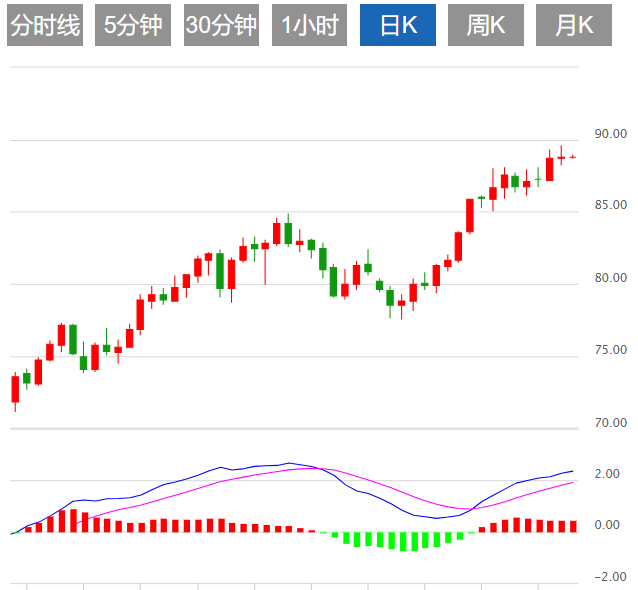 周四亚盘,油价高位窄幅震荡,现交投于88.89附近,隔夜由于美国原油库存意外增加抵消了今年剩余时间原油供应紧张的预期,油价在早些时候触及10个月高位后几乎持平。
