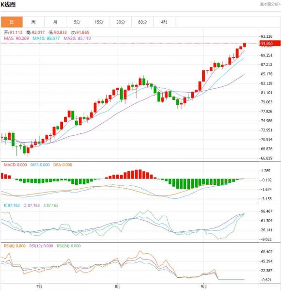 周五(9月15日),石油输出国组织(OPEC)成员国的原油产量削减得以延长,对原油市场形成了严格的压力,将美国原油价格推至十个月来的高位。今日,美国西德克萨斯中质(WTI)原油期货及布伦特原油期货均跃上90美元/桶高位。