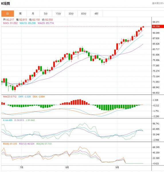 9月19日,海通期货发布原油日报,称可以看到高油价对市场的负面影响正在发挥作用,后续的复杂演绎将进一步呈现,油价的高温大幅波动行情出现概率较大,谨慎参与,注意节奏把握。