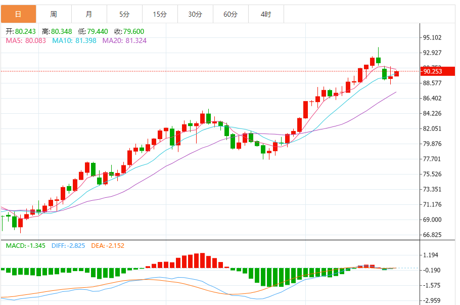 目前高低点逐步下移,操作上反弹继续看原油调整,原油90.5附近还是空,防守91.2,看88附近,若再次回踩,维持此前策略,88.3附近可继续多一次,损87.7。