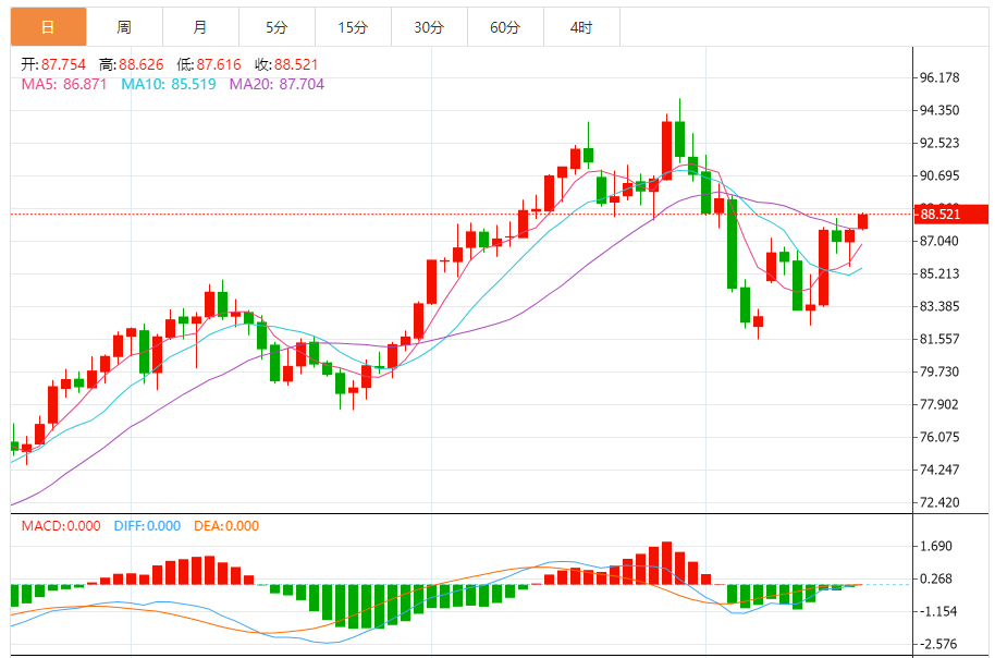 周三(10月18日),原油价格交投于88.54美元/桶附近。
