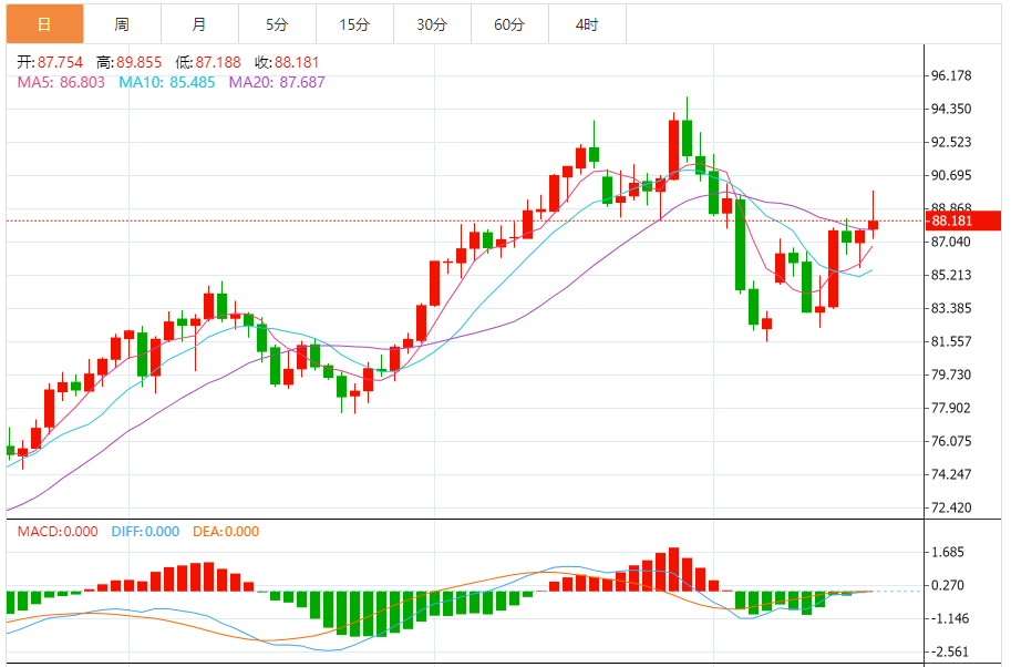 周四(10月19日),原油价格交投于88.17美元/桶附近。WTI原油市场本周的交易中出现大幅度波动迹象。