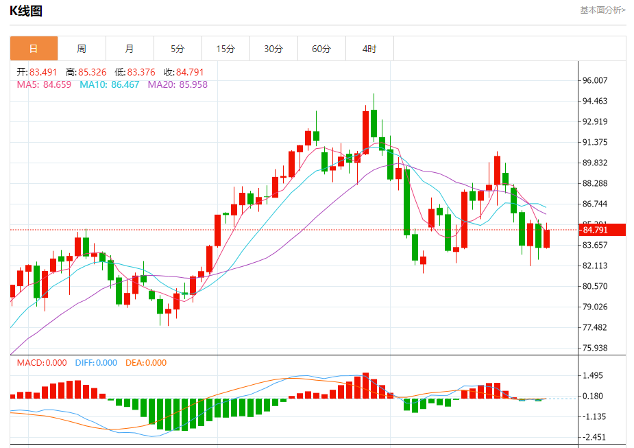 技术点评:在84.20之上,为多头信号,向上的目标位为85.60。